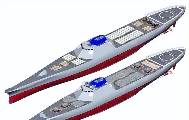 美军画图中国实现!055僚舰三体半潜武库舰曝光65米舰体48垂发